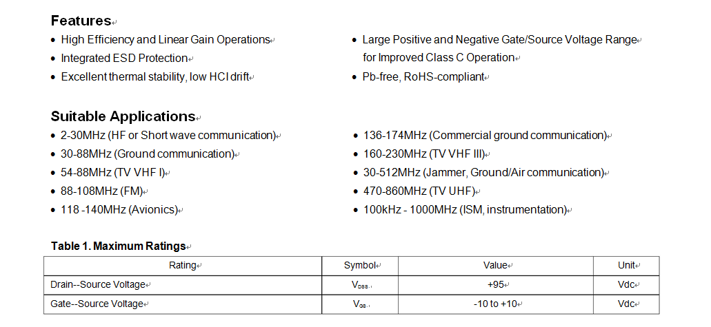 Excellent Theramal Stability Rf Power Amplifier Transistor LDMOS FET 28V HF to 2.7GHz